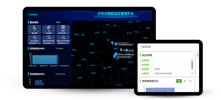 ·可显示电站充电电量,电站放电电量,电站备电余量、电站当日、当月充电电量,放电电量,本月本日尖峰平谷时段及电价,